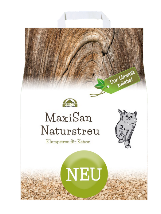 MaxiSan Naturstreu ist eine pfotenfreundliche und höchst saugfähige Klumpstreu aus reinen Holzfasern aus regionalem Anbau. Sie ist umweltfreundlich in der Herstellung und Anwendung, biologisch abbaubar, sparsam im Verbrauch und dabei eine hochwirksame Katzenstreu.